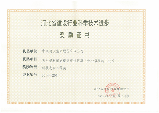 2014年河北省建設行業科學技術進步獎勵證書匯總