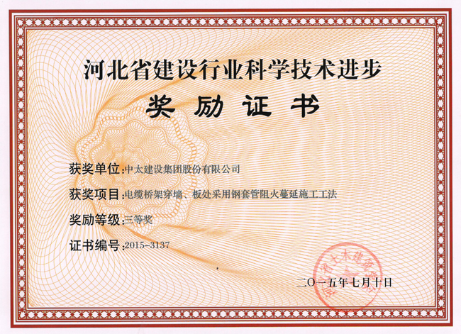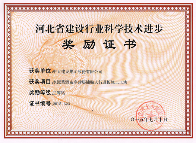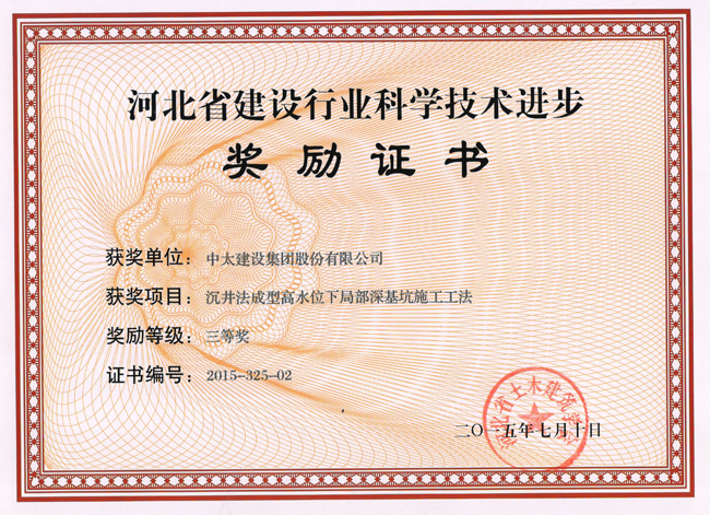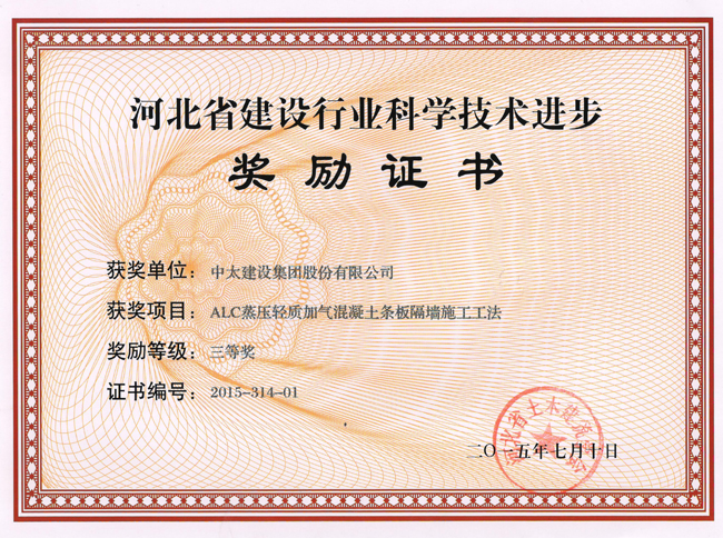 2015年河北省建設(shè)行業(yè)科學(xué)技術(shù)進(jìn)步獎(jiǎng)勵(lì)證書(shū)匯總